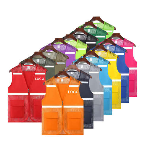 사진 및 낚시를위한 멀티 포켓 맞춤형 로고 반사 의류가있는 Hi-Vis 안전 작업 조끼