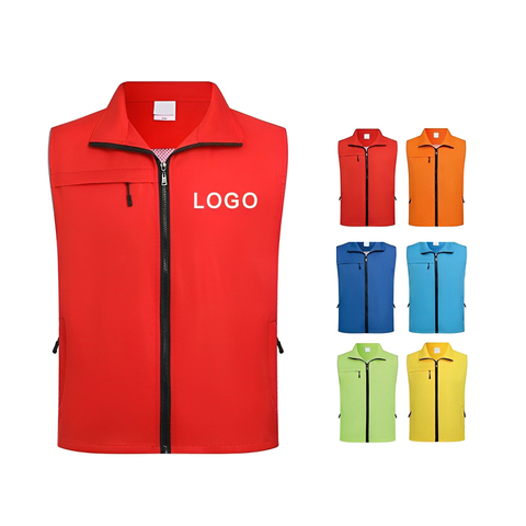 로고가 인쇄 된 그룹 활동을 위한 맞춤형 통기성 방풍 폴리에스터 지퍼 포켓 조끼 작업 전체